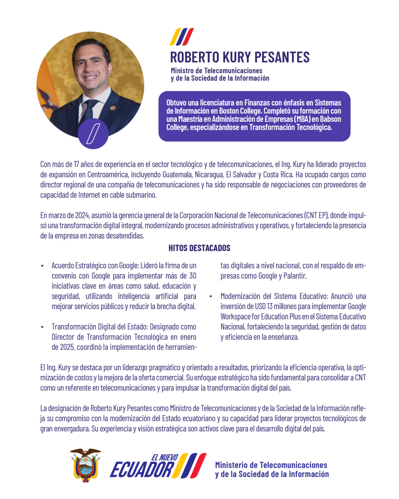> Roberto Kury Pesantes – Ministro de Telecomunicaciones y de la Sociedad de la Información